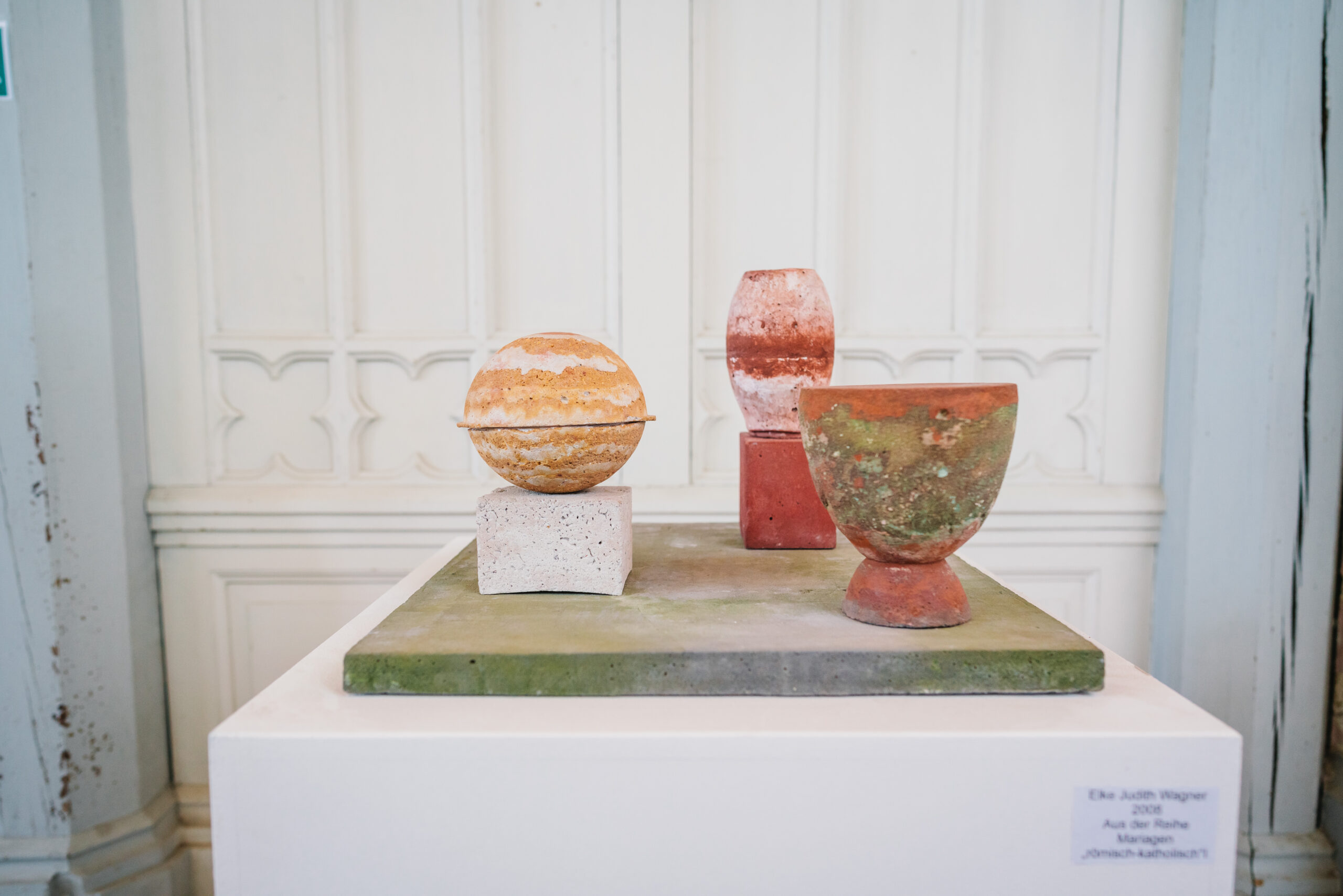 Gezeigt wurden Werke zweier Künstler, deren Arbeiten in besonderer Weise mit dem Ausstellungsort in Beziehung traten: Frank Dornseif präsentierte die Rauminstallation „Ein Raum für Pontormo“, die sich auf christliche Bildmotive des Manierismus bezieht, während Elke Judith Wagner eine Auswahl von Plastiken und Zeichnungen aus rund vier Jahrzehnten ihres künstlerischen Schaffens zeigte. Mit Arbeiten zum Thema „Kreuz als Zeichen“ stellte sie zudem einen unmittelbaren Bezug zum Kirchenraum her.