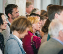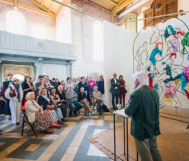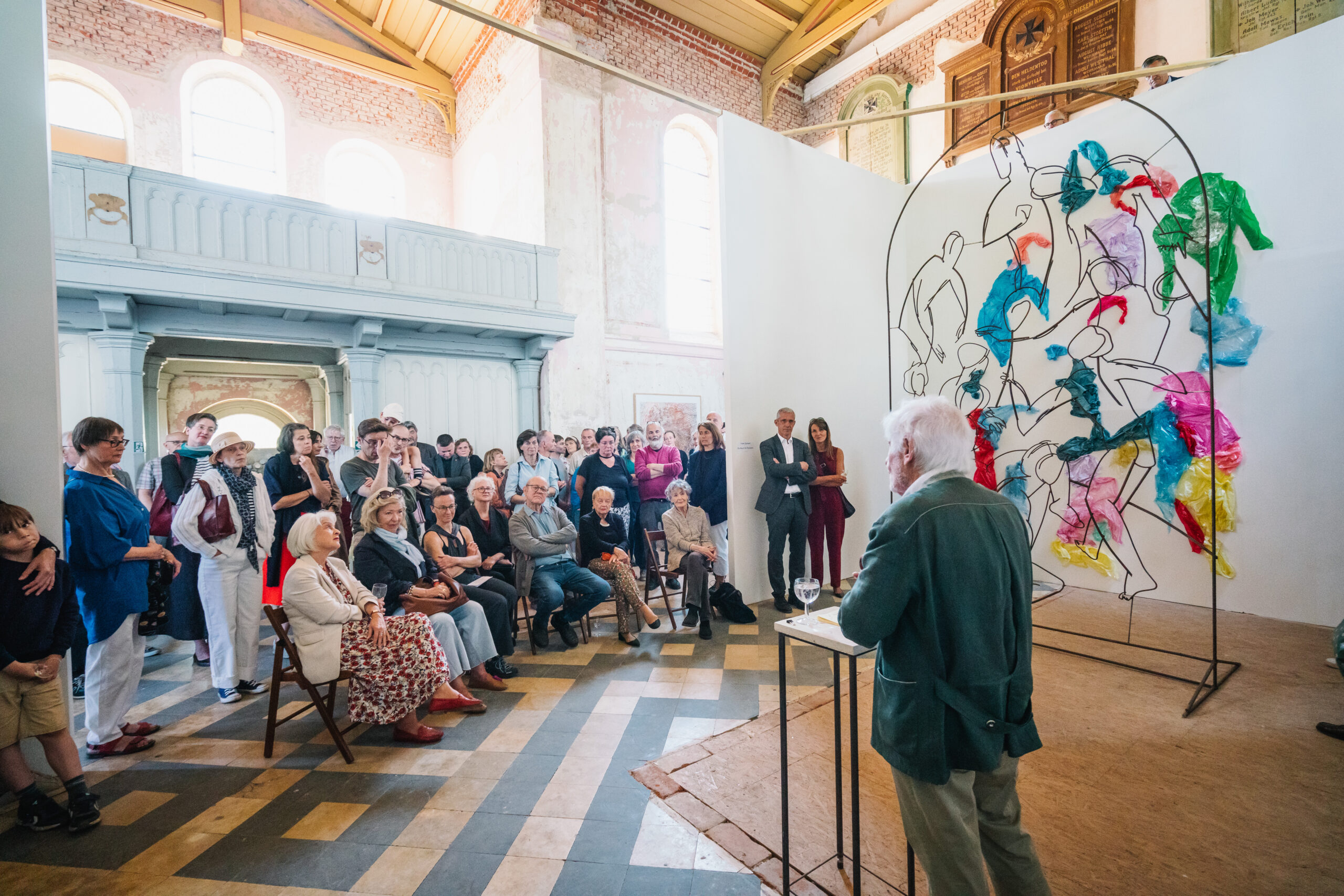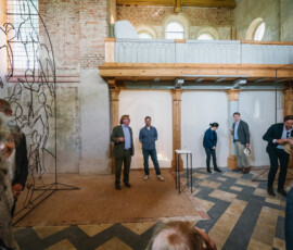Nach der kurzen Eröffnungsrede des Vereinsvorsitzenden Frederic Krone folgten Worte von Andre Schmitz sowie eine ebenso persönliche wie eindringliche Rede von Peter Raue, die viele Besucher nachhaltig berührte. In der besonderen Atmosphäre unserer Kirche entfalteten die Arbeiten aus Stahl, Beton und Papier ihre volle Wirkung.